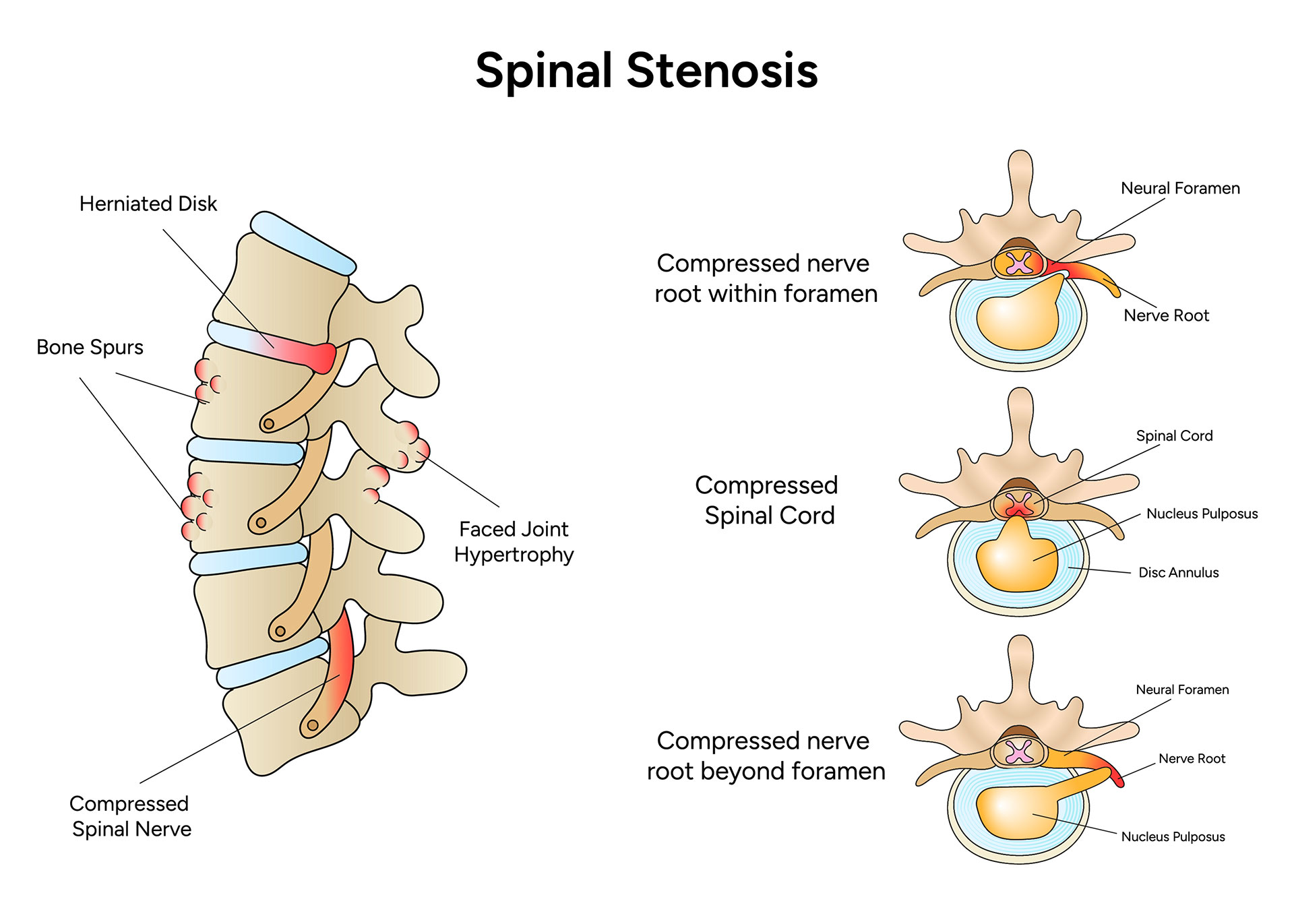 Our specialists assess imaging findings, neurological symptoms, and physical examination results to determine whether spinal canal narrowing is directly responsible for nerve compression.