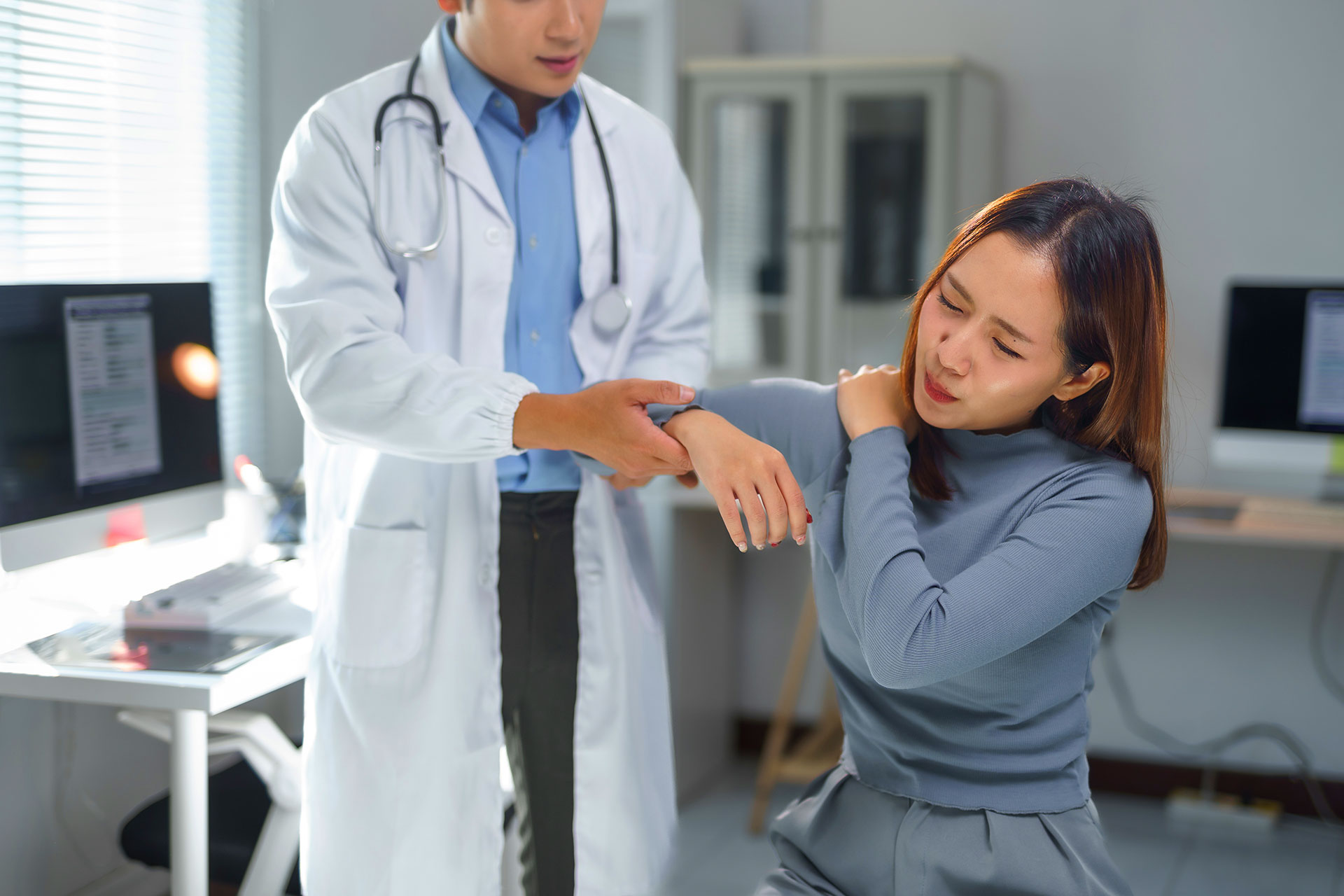 Patients often experience pain when raising the arm, weakness, stiffness, or a catching sensation during movement. Symptoms may gradually worsen and interfere with sleep or daily tasks. Because these signs can overlap with rotator cuff injuries or bursitis, accurate clinical evaluation is essential.