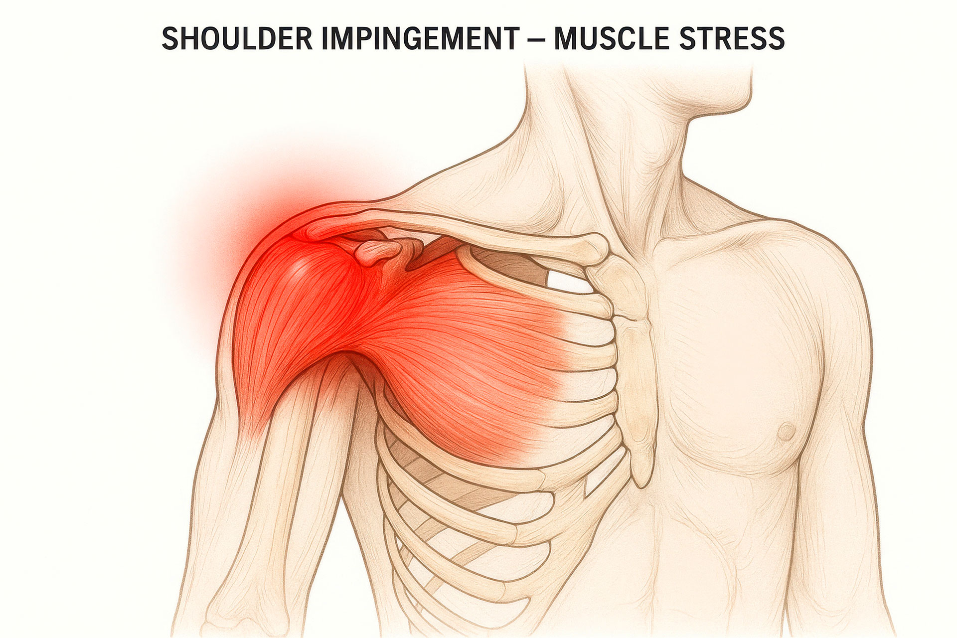Shoulder impingement commonly develops from repetitive overhead activity, muscle imbalance, poor posture, or structural changes within the joint. Bone spurs, inflammation, or rotator cuff weakness can reduce the space within the shoulder, increasing tendon compression during motion.